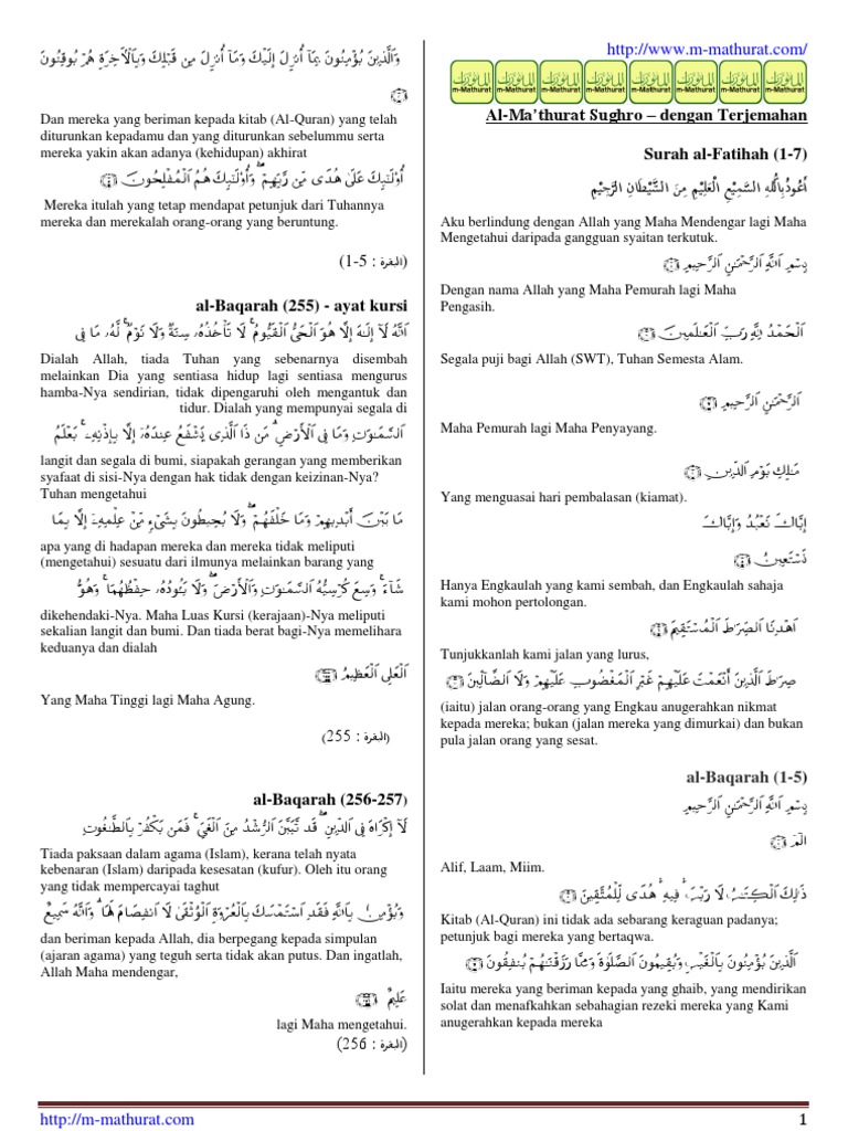 Senarai Doa Al Mathurat Sughro Dengan Terjemahan Http Fb Com Mathurat Pdf